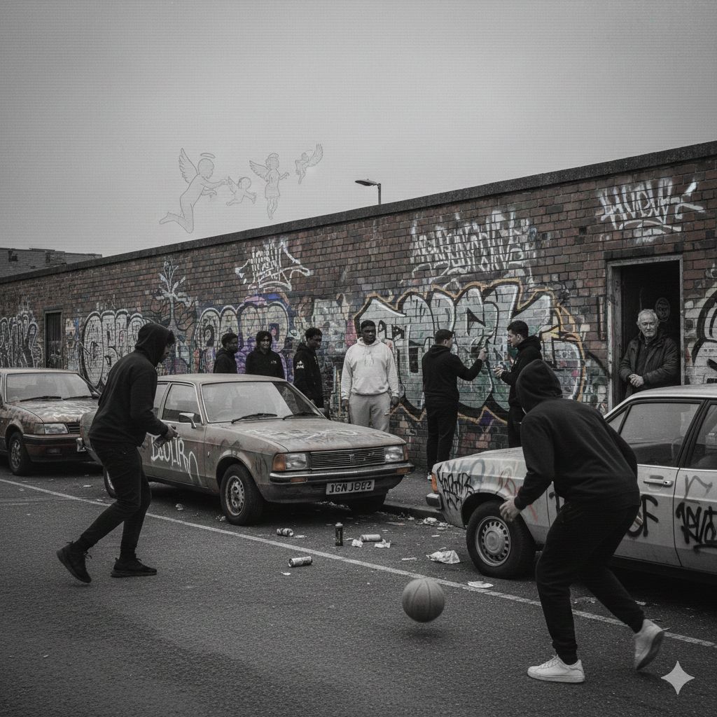 It paints a vivid picture of street life, blending nostalgia for the “history” and “dodgy old cars” with the restless energy and angst of modern youth (“Youth driving youth driver youth laying down harm’s,” “Spray can in mind trying to leave one Mark”).