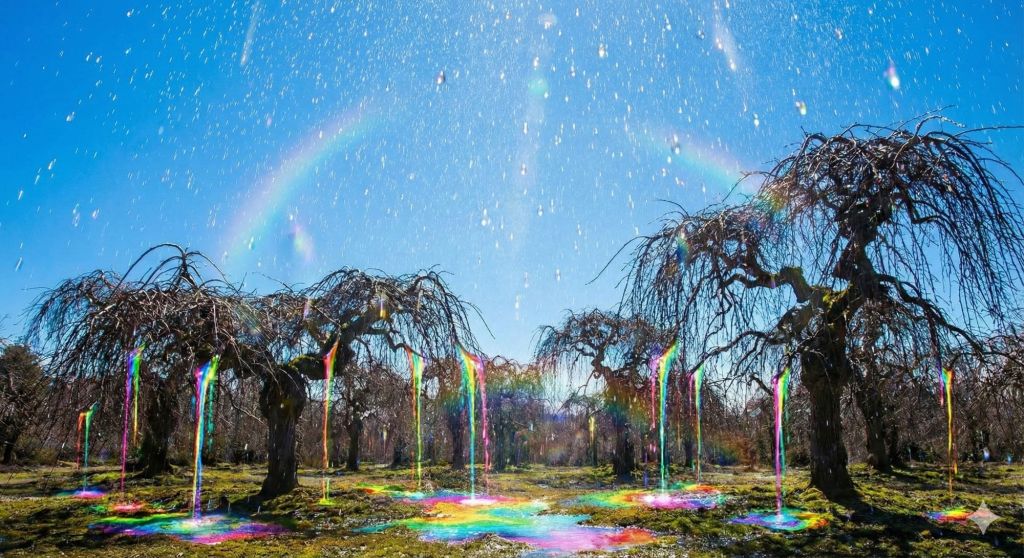 - The Metaphor: The trees are “giving” everything they have. The rainbow fluid isn’t just paint; it looks like lifeblood or “future dreams” melting away.