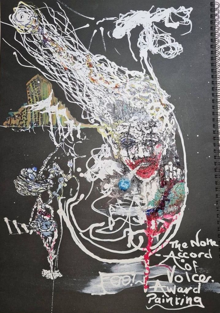 The title “The None-Accord of Voice Award” feels deeply sarcastic. An award usually celebrates achievement or harmony. Here, the “award” is given for the failure to communicate or the inability to be in “accord” with oneself.