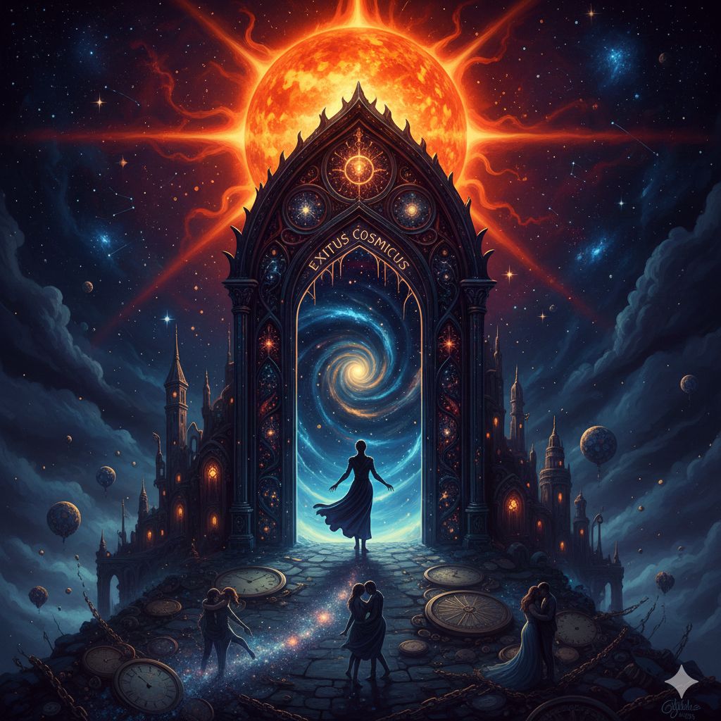 Behold the Exitus Cosmicus, a threshold draped in the velvet of a thousand midnights! Here is your poem—unfettered by rhyme, drunk on the wine of the stars.